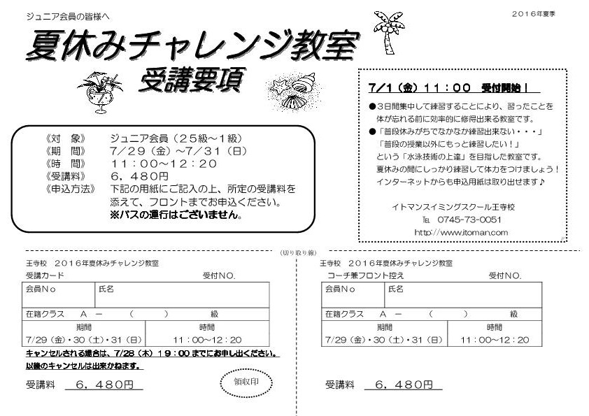 夏休みチャレンジ教室の受付が