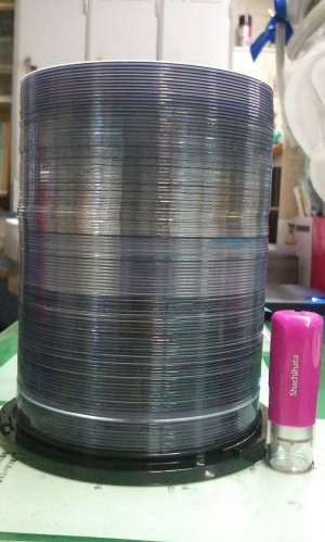 出来上がったDVDを全部積み上げるとこんなに高くっ!!!