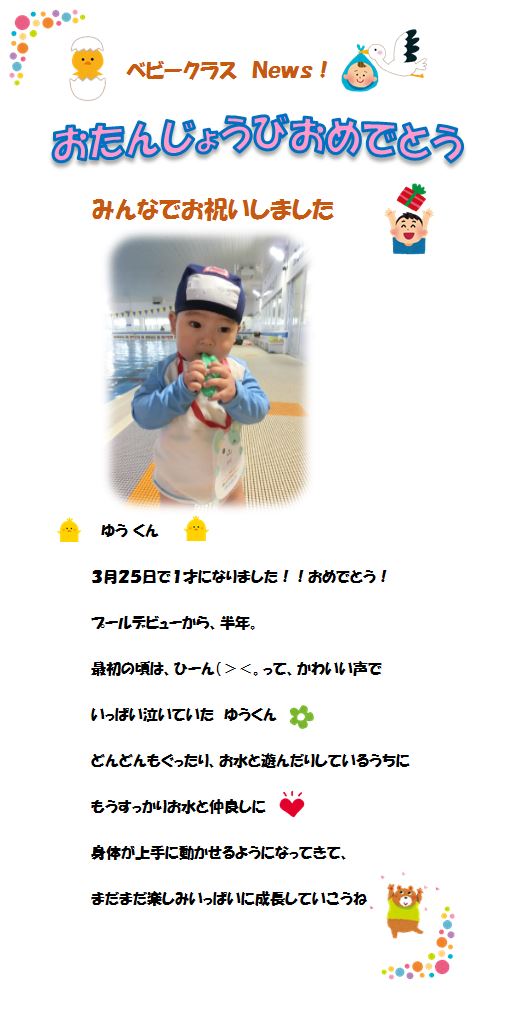 ♪ベビークラス News♪ お誕生日お祝いしました!‘ゆうくん’