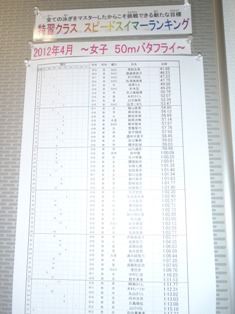 このランキング掲示によって、ライバル意識を刺激し合いながら、泳速アップへ向けての