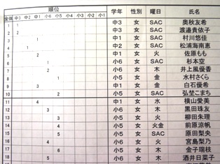 特習生は、自分の名前の段をチェックしてみてください