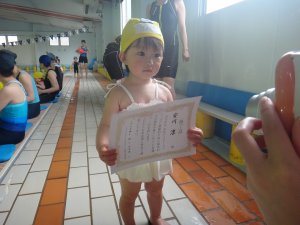 「りん殿 あなたはベビースイミングに積極的に取り組まれ一生懸命練習に励みました。その栄誉を称えこれを賞します。これからもお友達と仲良く頑張って下さい!!」