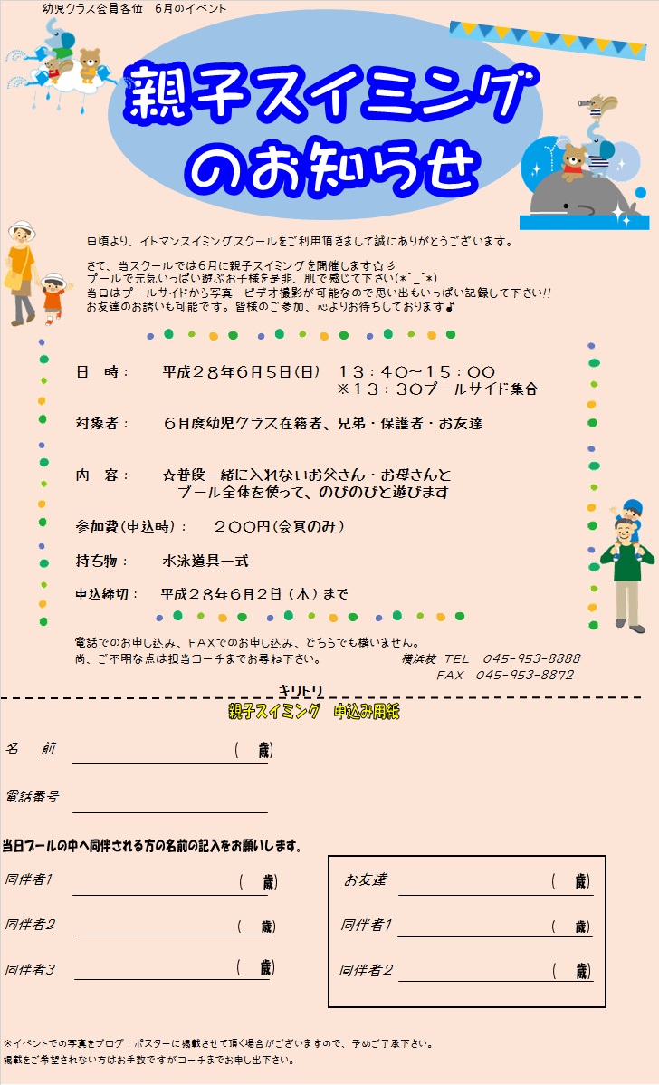 【幼児クラス】 親子スイミング