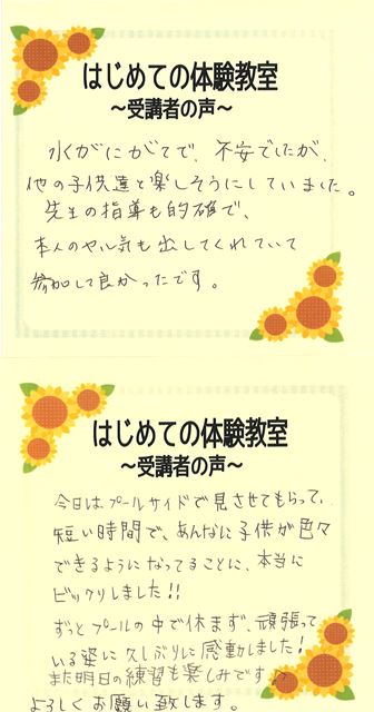 体験教室の感想をご紹介いたします!