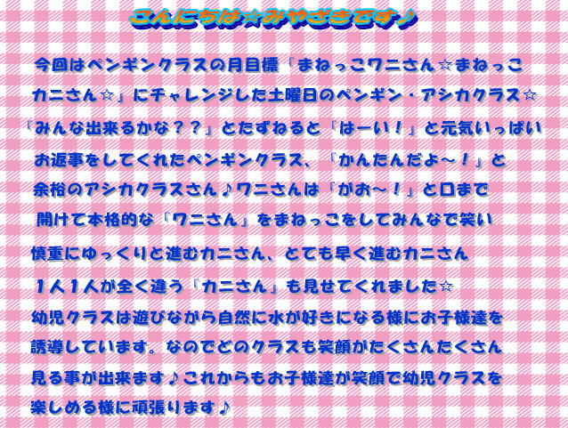ワニさん☆カニさん☆<幼児クラス土曜日ペンギン・アシカクラス>