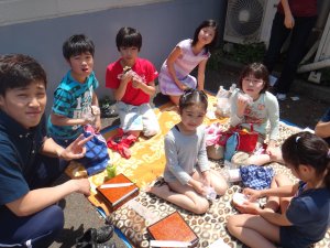 お昼ご飯はピクニックのように外でおいしくいただきました♥