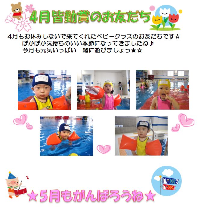 ★ベビークラス★4月皆勤賞のおともだち★