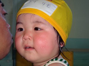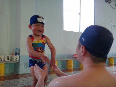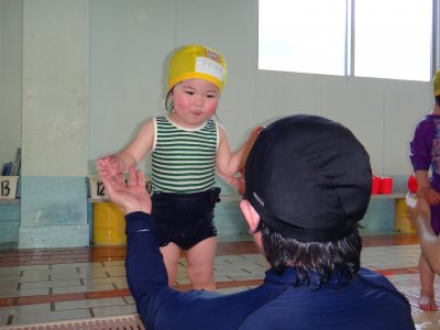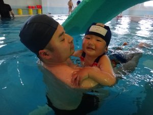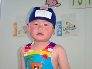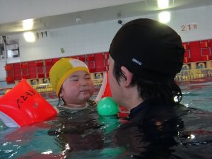 ママとプールに入る時のゆうとくんはいつも不安な顔。。。