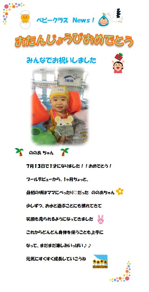 ♪ベビークラス News♪ お誕生日お祝いしました!‘ののあちゃん’