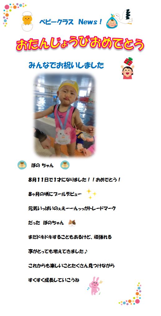♪ベビークラス News♪ お誕生日お祝いしました!‘ほのちゃん’