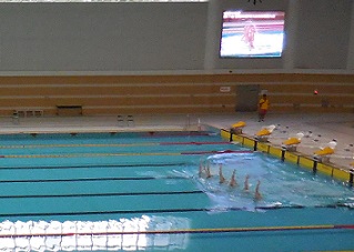 大会は50mプールで行われ、長水路が初めてという人も![]()