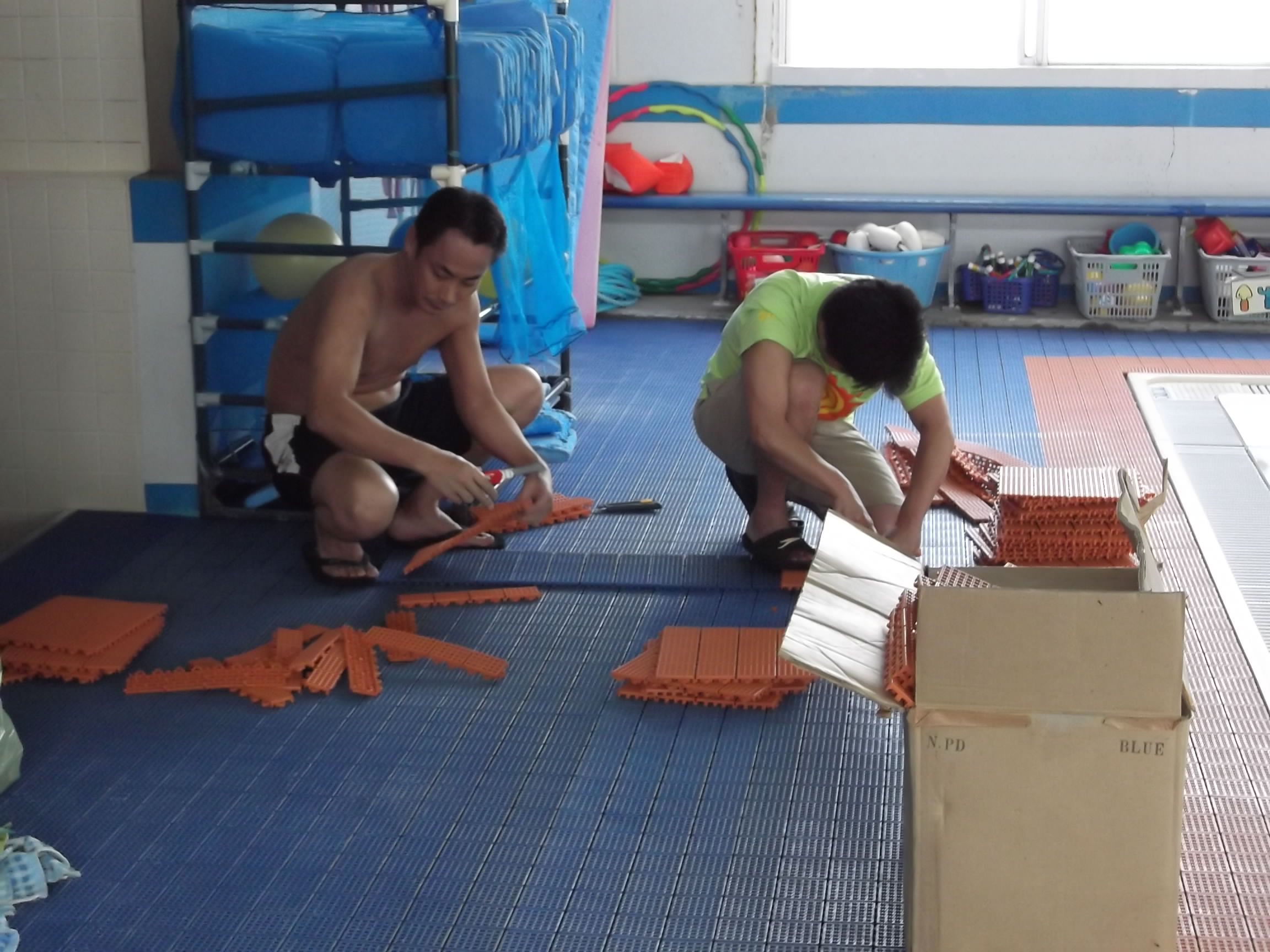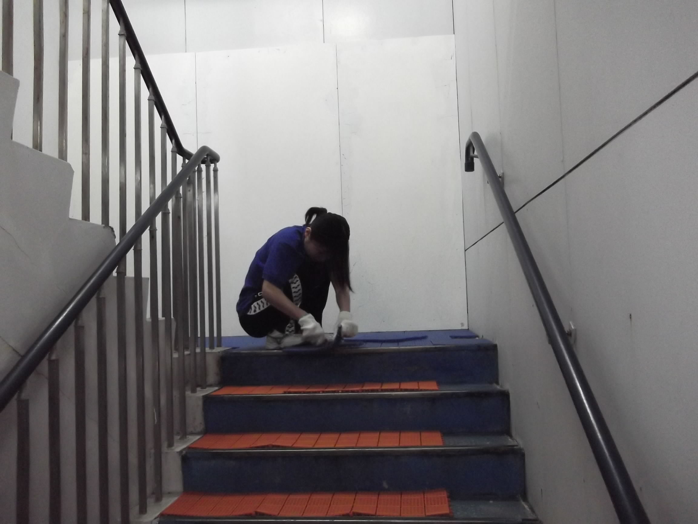 福田先生は静かに、そして的確にマテフレを階段に敷き