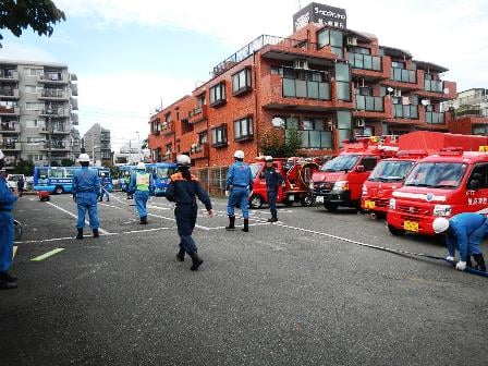震災時に使用可能な水源をを利用した連携訓練の協力校としてイトマン横浜校にて