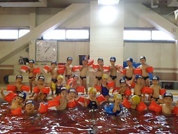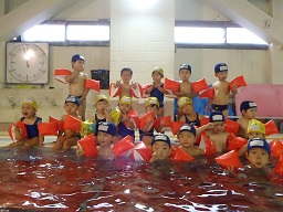 水の中にいるとだんだん前に迫ってしまう子も…