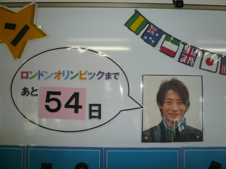 6月になりました!!(^−^)オリンピックも近づいてきましたー!!上石神井校でも、ロンドンオリンピックのカウントダウンが始まってます★★ギャラリーにて、ロンドンオリンピック特集を掲示してあるのでぜひご覧ください!!