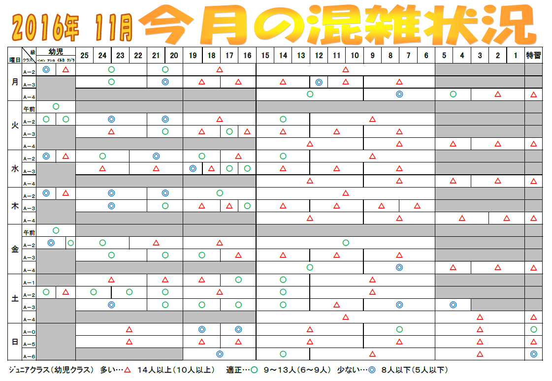 ★土曜日・・・A-1、A-2時間帯振替人数制限有