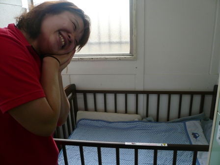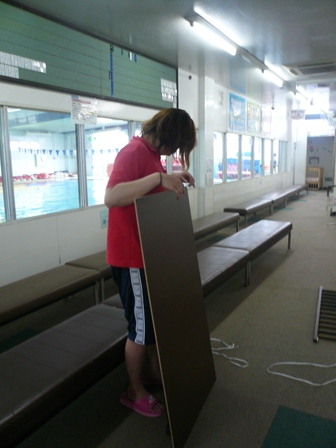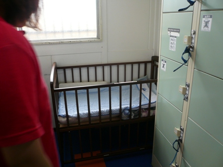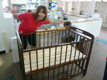 さぁ!!ベビーベットを女子更衣室搬入!!