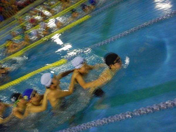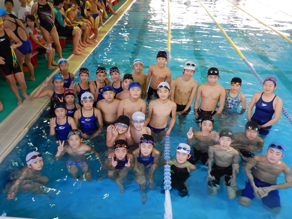 今回は対抗戦形式を取りやめ、ムカデ競争・トリムリレーと2つのレクリエーションを追加して、「生涯水泳・水泳を楽しむ」という事をテーマに開催されました。
