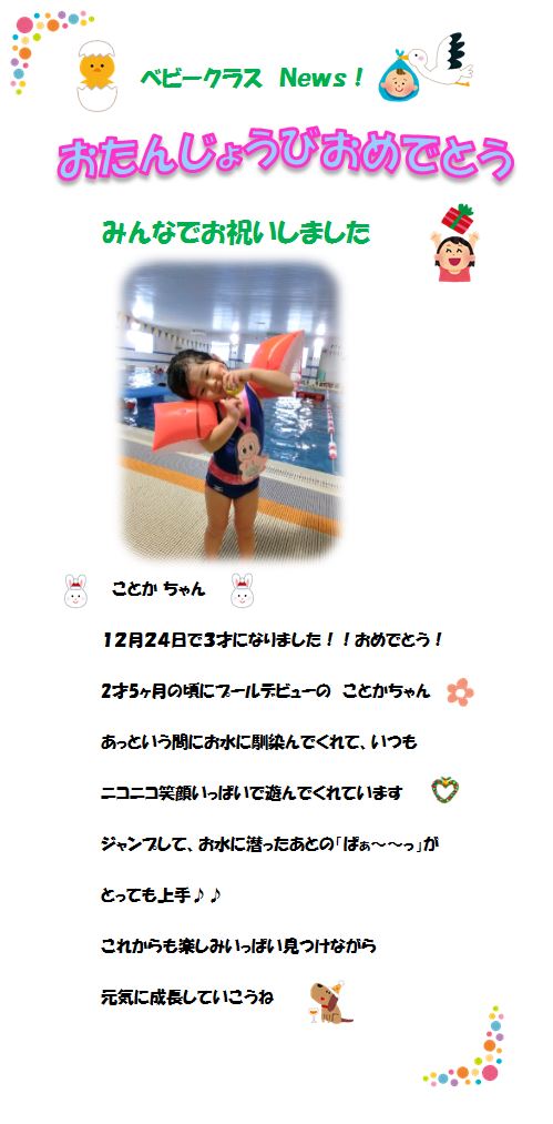 ♪ベビークラス News♪ お誕生日お祝いしました!‘ことかちゃん’