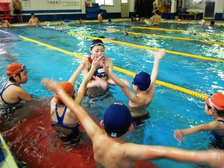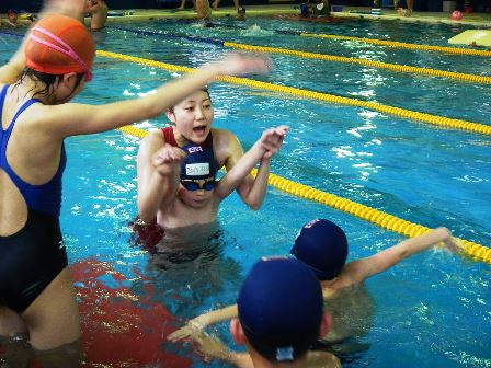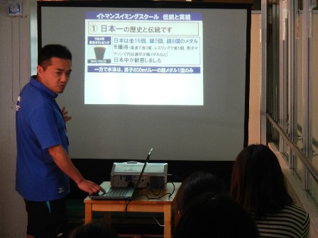 保護者のみなさんにはパワーポイントを使って1級合格までの道のりについてお話させて頂きました(*^_^*)プールサイドにて泳ぎの説明も♪