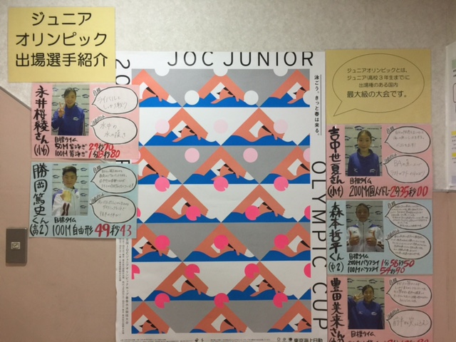 ジュニアオリンピック出場者の掲示を致しました〜!!