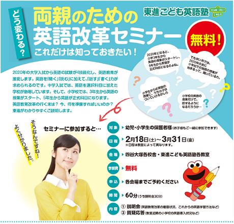 さて、11日・16日・19日と行った【両親のための英語改革セミナー】ですがお陰様で無事に終了いたしました。