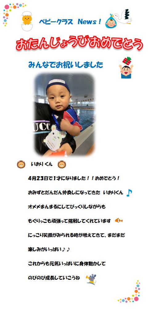 ♪ベビークラス News♪ お誕生日お祝いしました!‘いおりくん’
