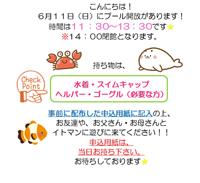 プール開放 今週の日曜日です!!