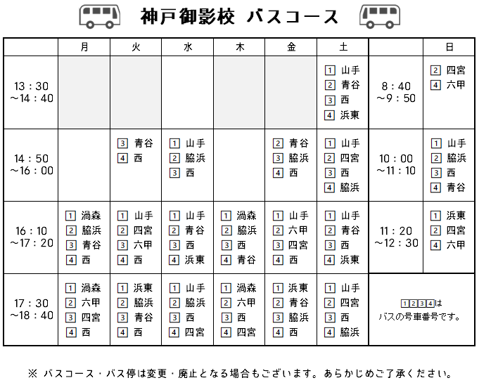14.甲南学園平成記念館前 (帰:住吉本町バス停) 15.イトマン神戸御影校