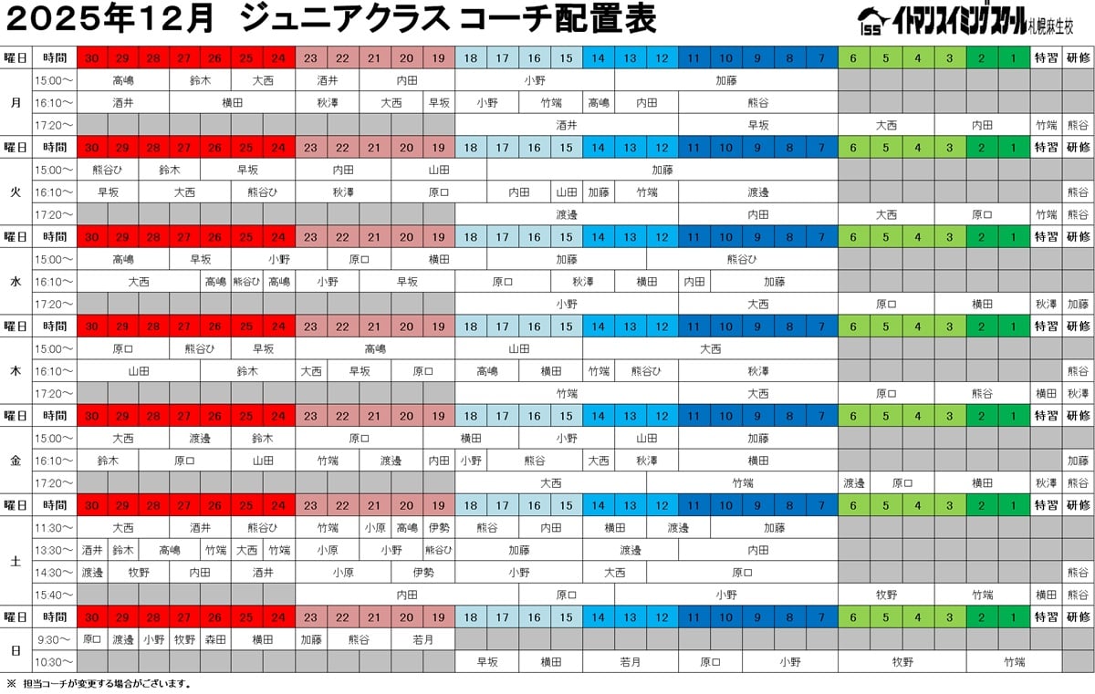 土曜11:30~のジュニアクラス・日曜9:30~のジュニアクラス・幼児クラスは新規入会受付を中止しております。