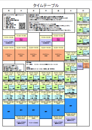 当スクールのタイムテーブルです。