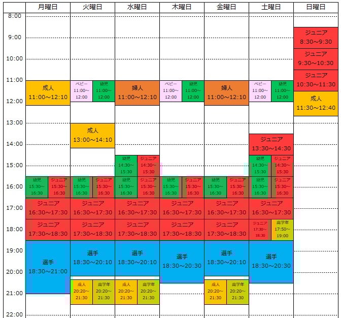体操教室のタイムテーブルは下記のとおりです。