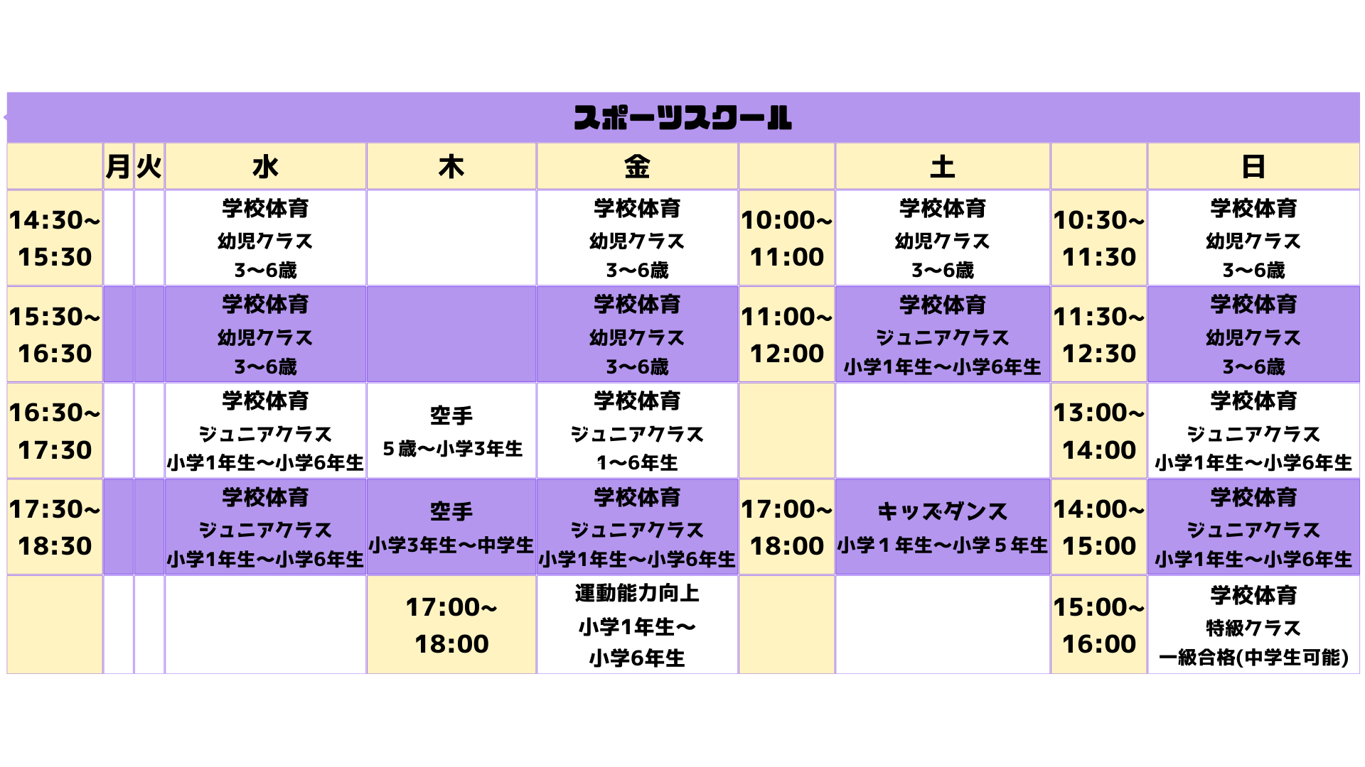 ※2023/5月より駐車場・更衣室の混雑緩和の為、土日の授業に