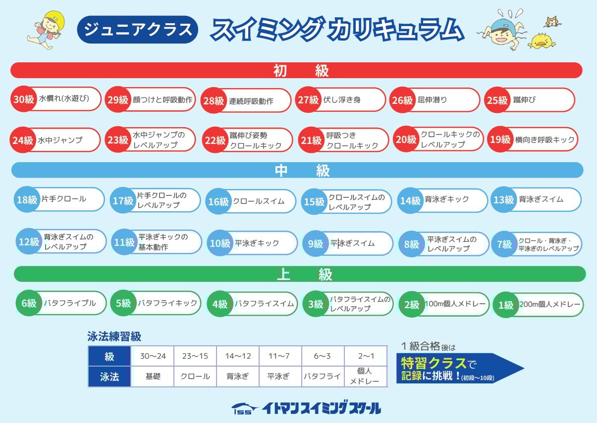 イトマンスイミングでは、経験豊富なスタッフが、まったく初めての方からマスターズ大会に出場する方まで、それぞれのレベルに合わせて、きめの細かなカリキュラムで、楽しく丁寧にご指導いたします。
