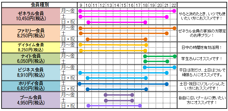 新たに「プール会員」も加わって、はじめての方でもご利用しやすくなりました。