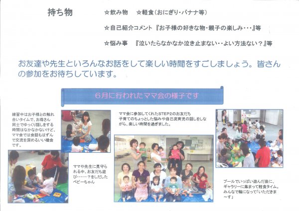 ベビークラス『ママ会』開催のご案内