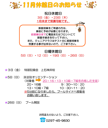 11月休館日のお知らせ