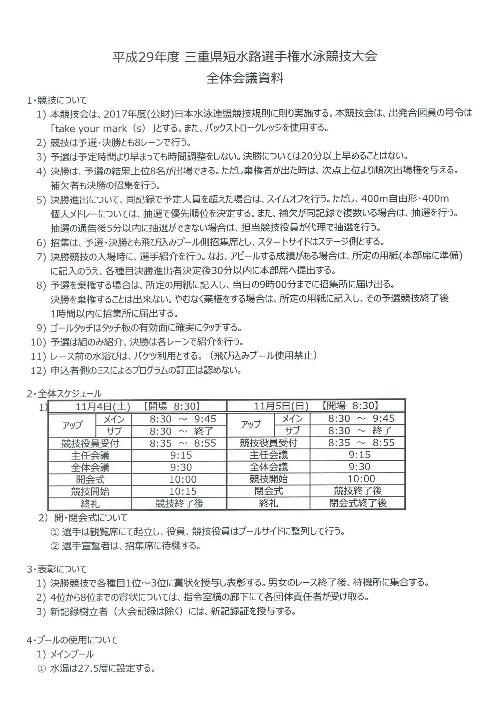 三重県短水路選手権水泳競技大会 試合要項
