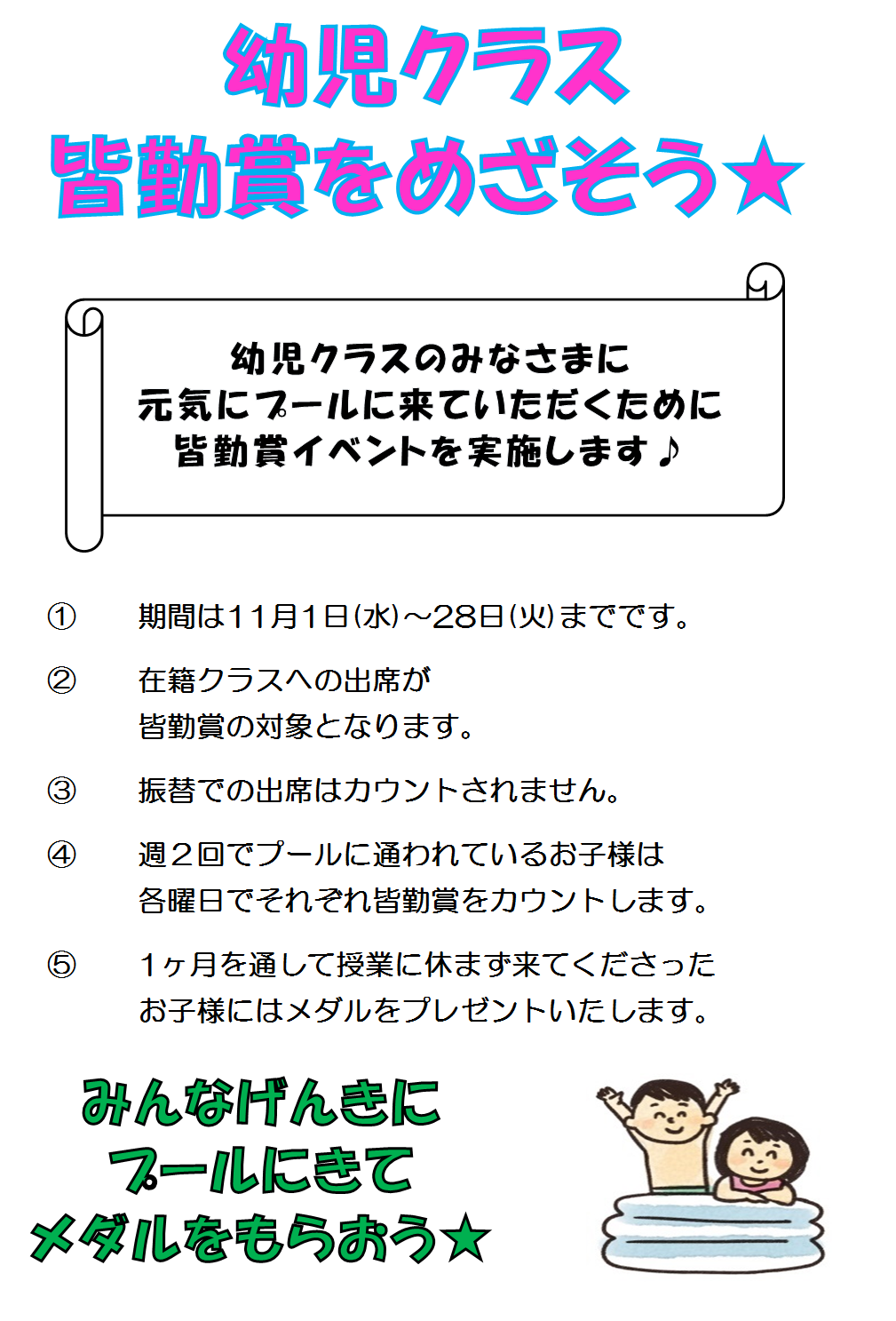 今日から幼児クラスの皆勤賞が始まります!!