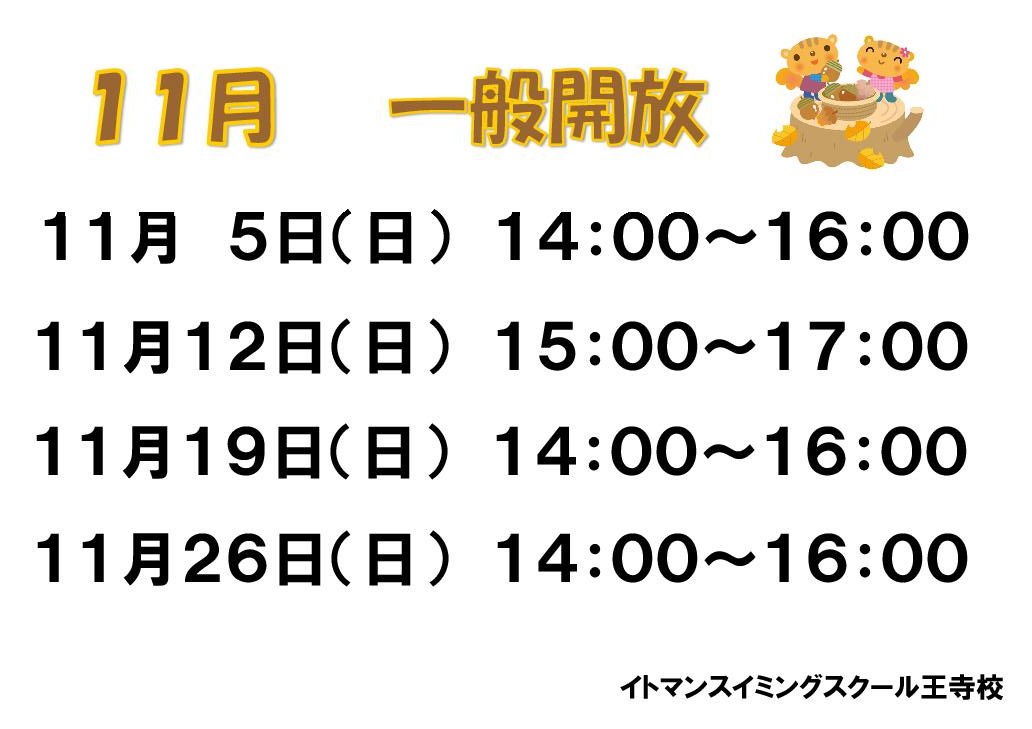 11月12日(日)一般開放時間変更となります