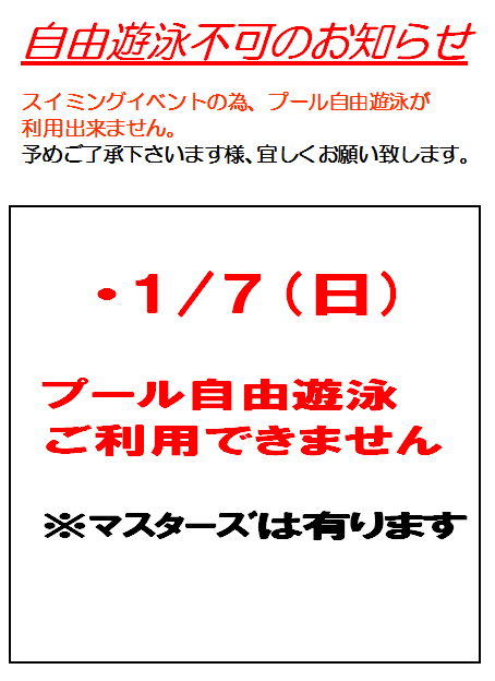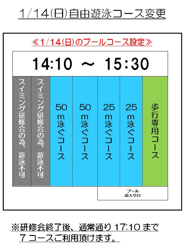 【 プール自由遊泳変更日 】