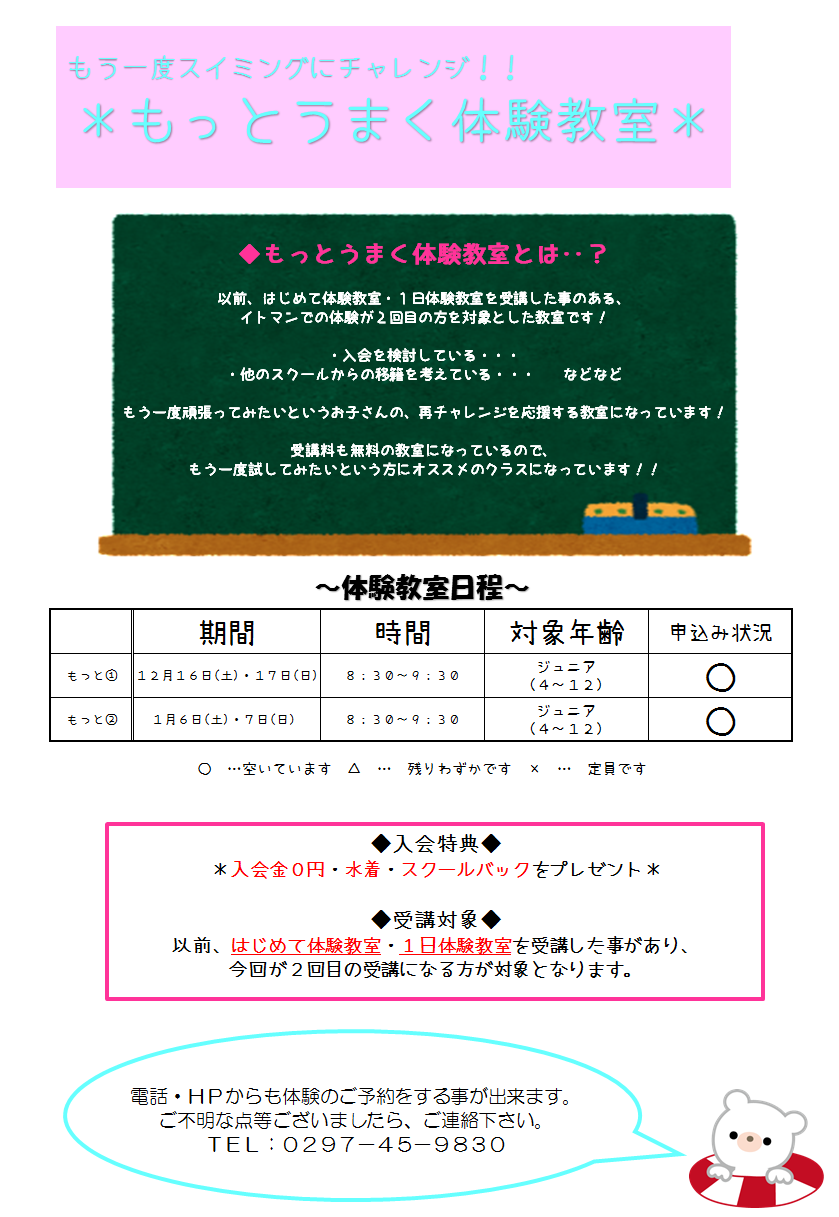 もう一度イトマンで泳ごう☆もっとうまく体験教室!