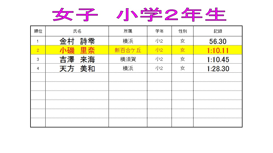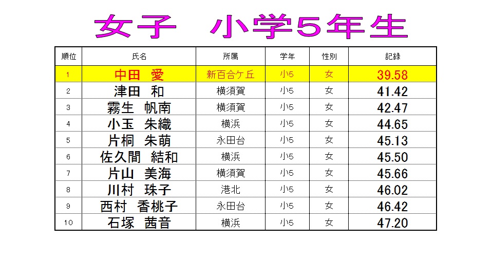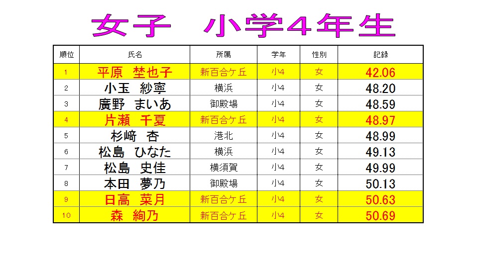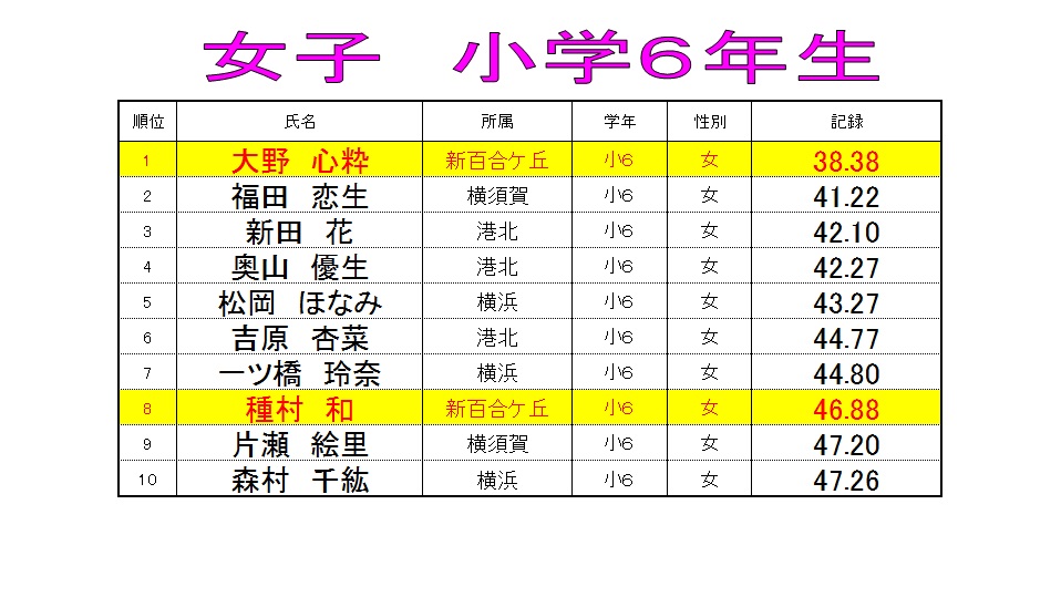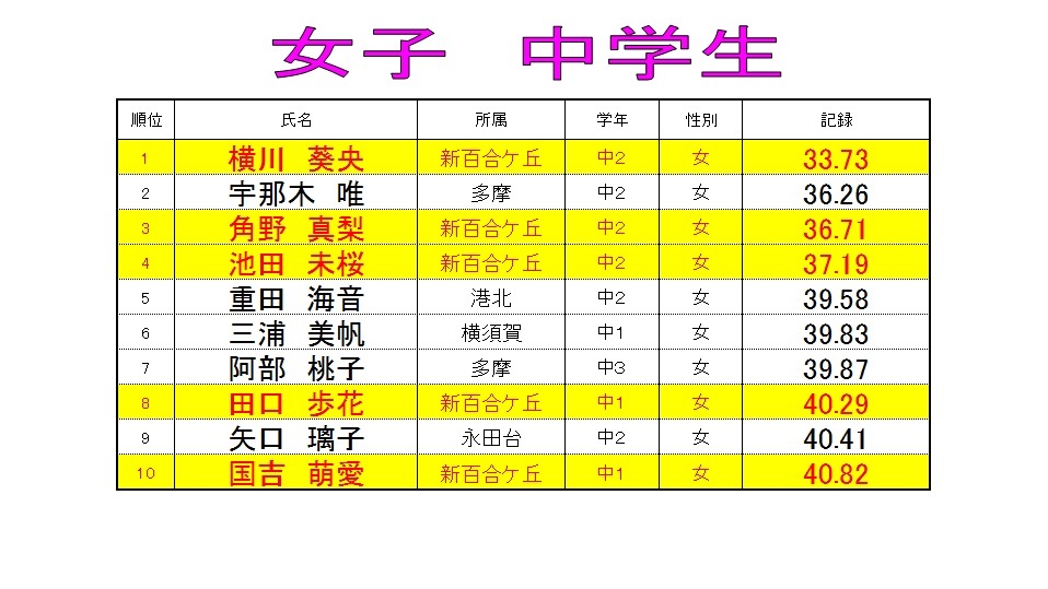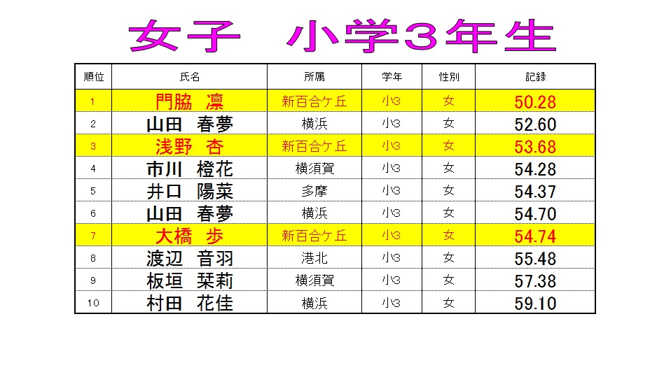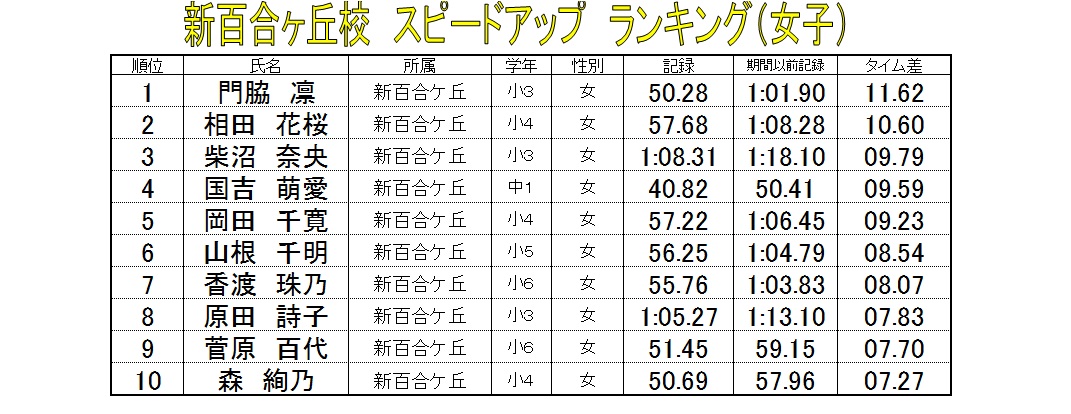 特習クラス 【3ヶ月ランキング 女子50mバタフライ】