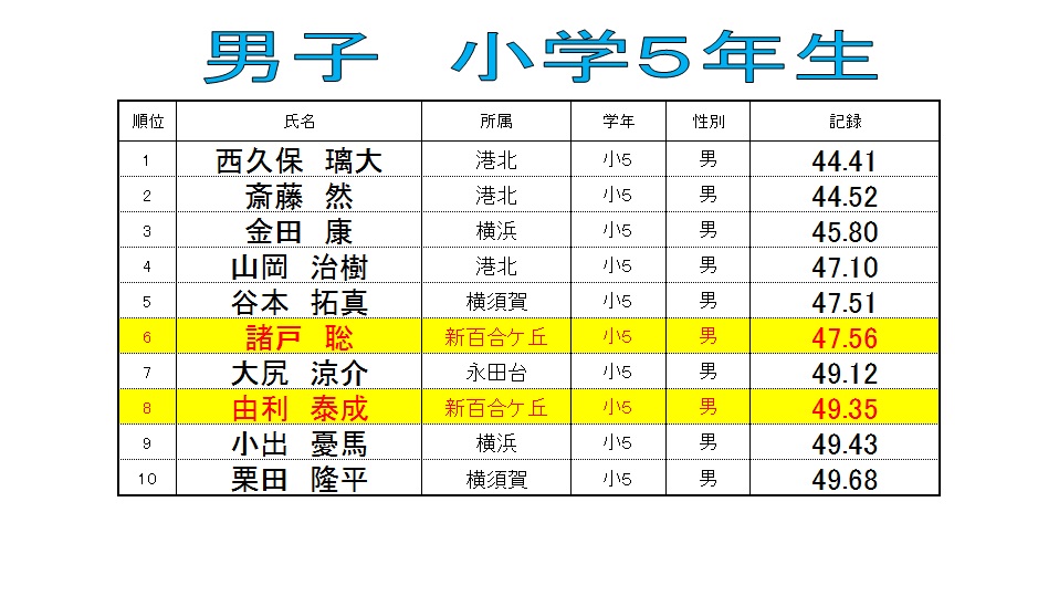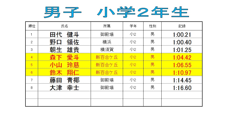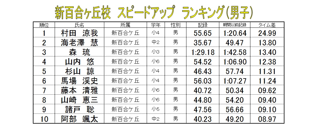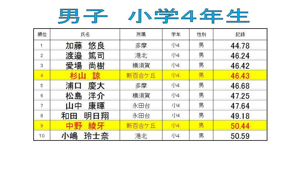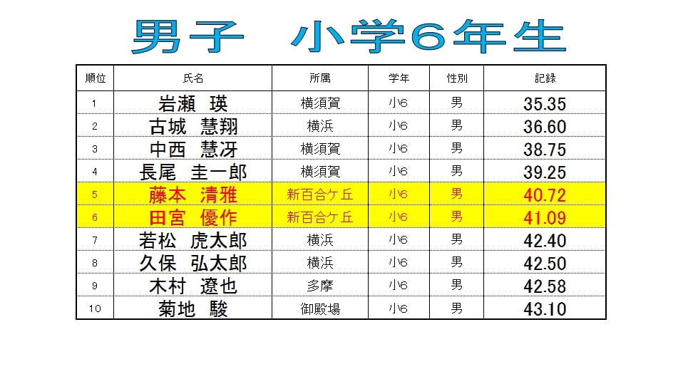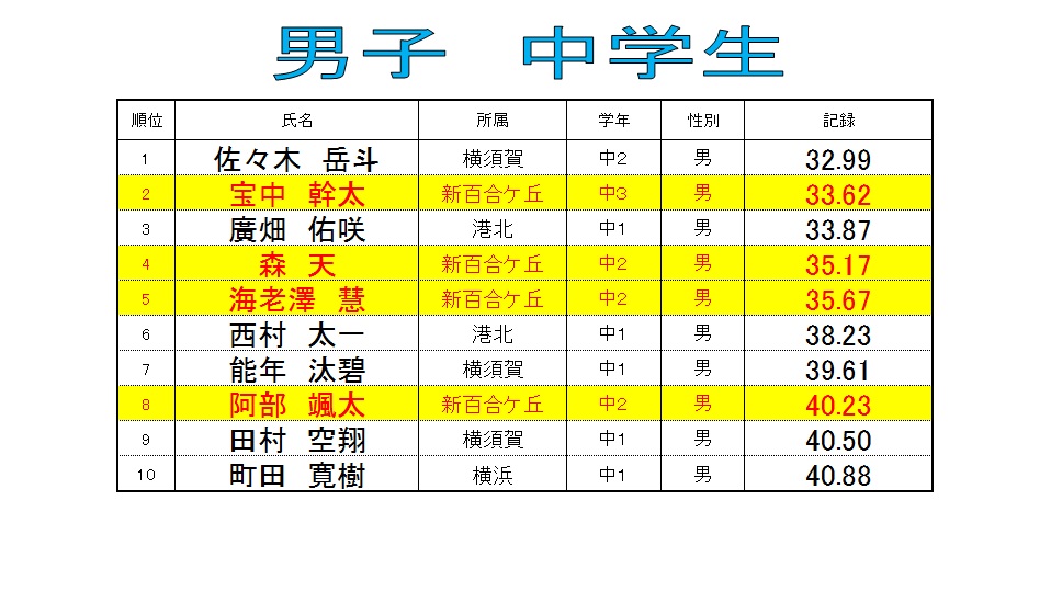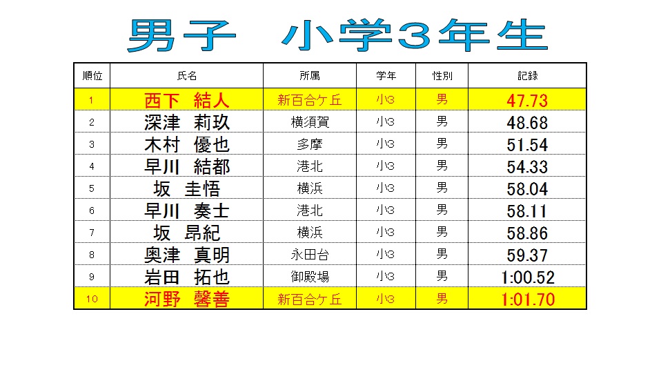 特習クラス 【3ヶ月ランキング 男子50mバタフライ】