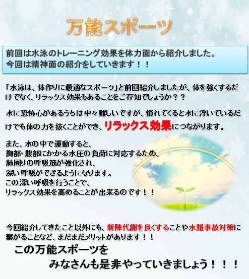 短期教室 【水泳のメリットvol.5】