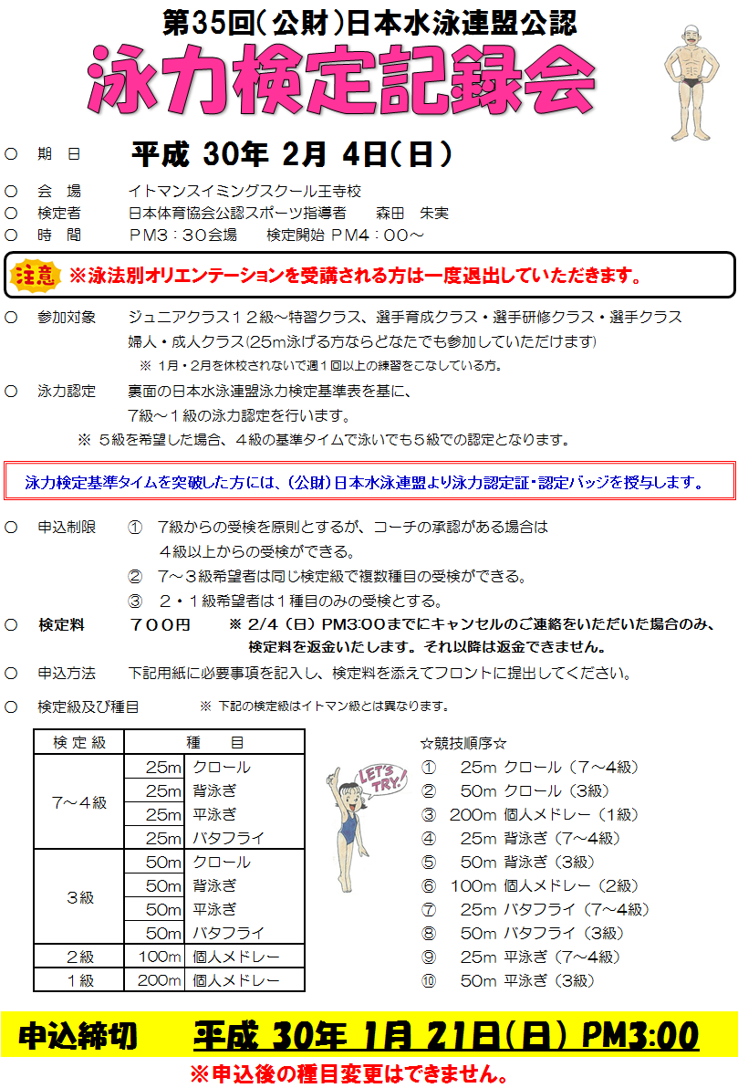 泳力検定記録会に参加しよう!!