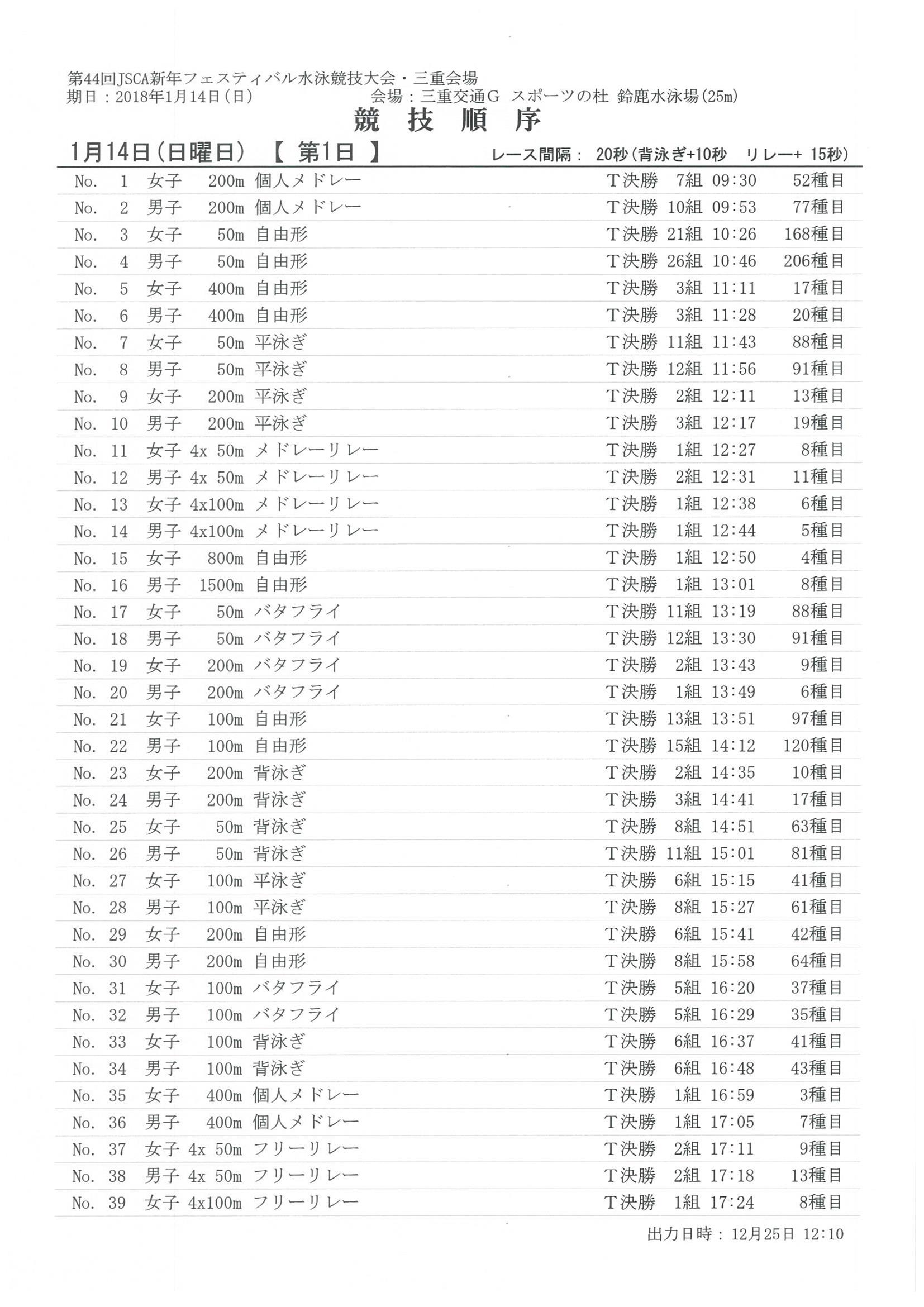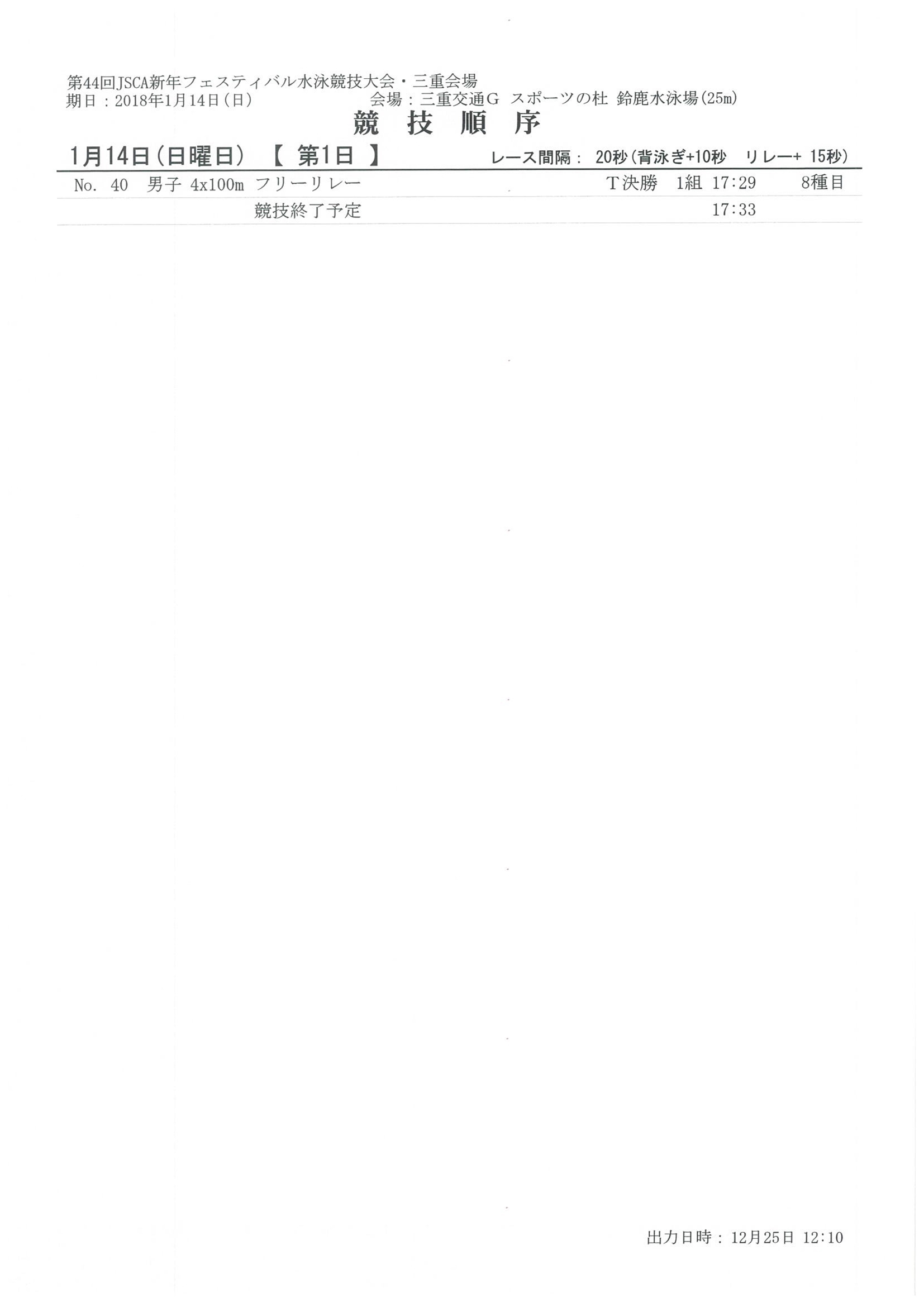 JSCA新年フェスティバル水泳競技大会 試合要項