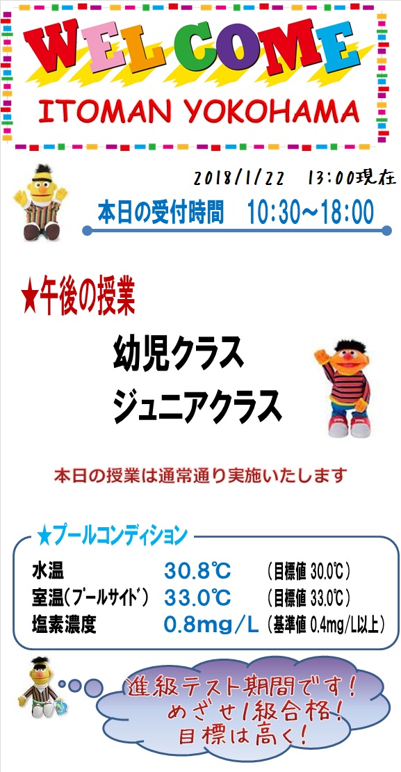 本日の営業状況【2018.1.22 PM】