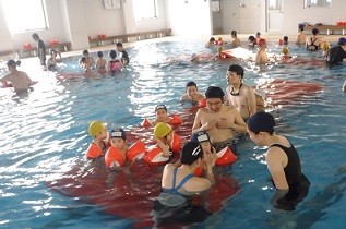 幼児クラスではプールならではの遊びを親子で 行いとても盛り上がりました!