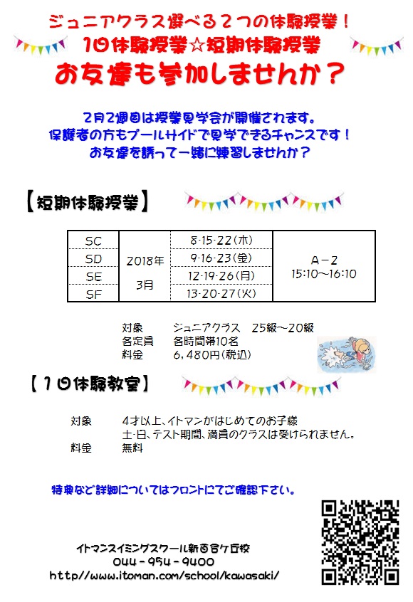 【ジュニアクラス】短期体験授業・1日体験教室のご案内